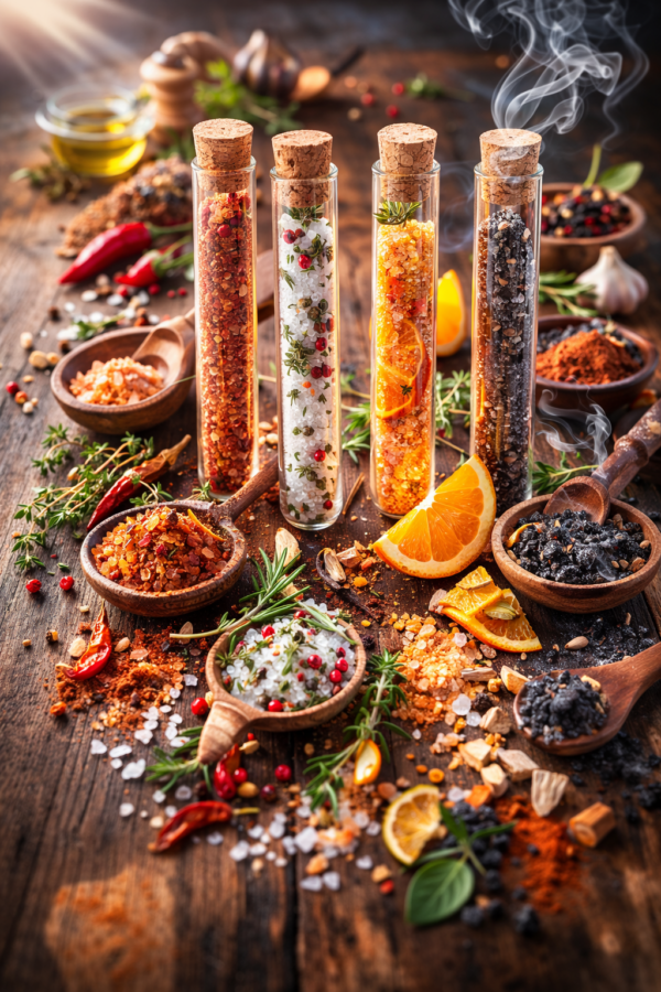 Jellegzetes piramis alakú – földközi tengeri – sókristályok és narancsolaj, kurkuma, fűszerpaprika keveréke.