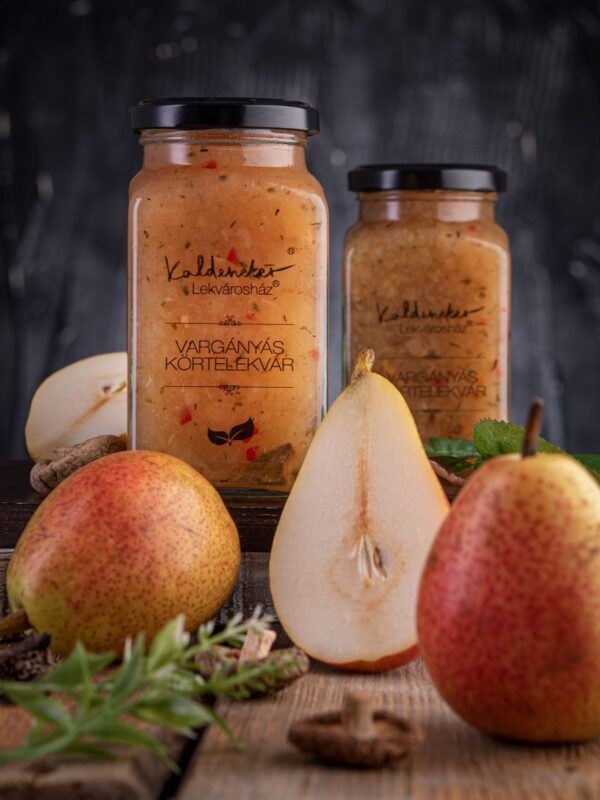 Összetevők: vilmoskörte, vargányagomba, kakukkfű, cukor, pektin, almaecet, chili paprika
